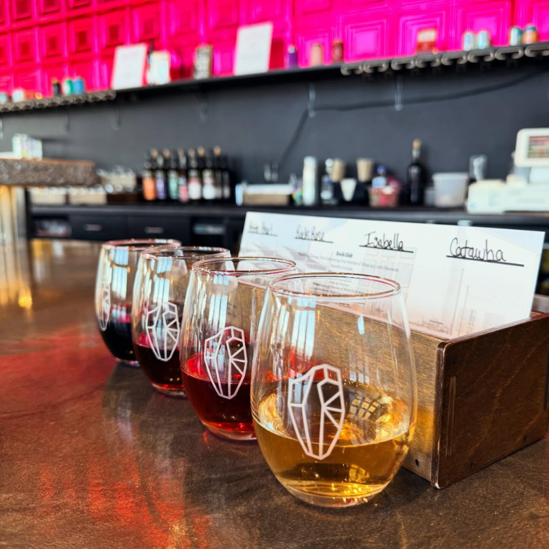 Guests can enjoy daily wine tastings, relax with live music and events, and pair their favorite pours with a thoughtfully curated menu featuring tacos, pub pretzels, and charcuterie boards. The striking 6,000-square-foot barn-style facility creates a welcoming, elevated atmosphere perfect for groups, couples, or casual drop-ins.